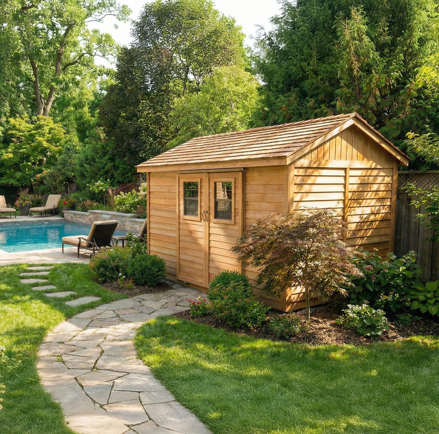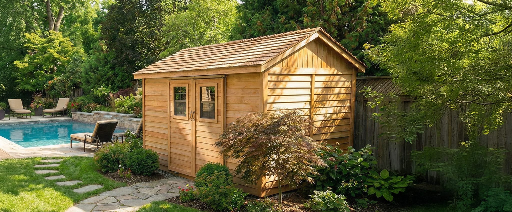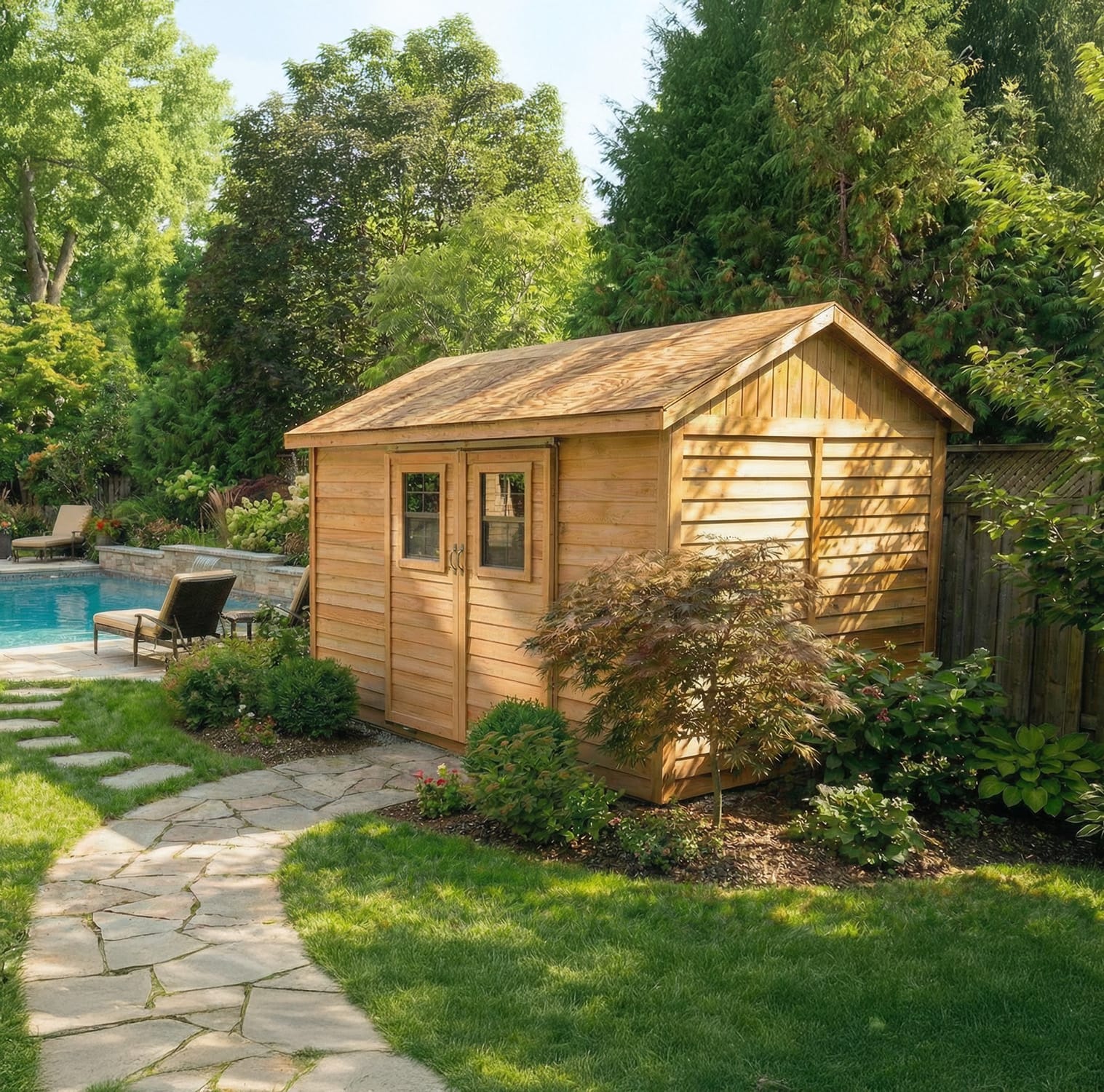 12×8 Western Red Cedar Cabana Shed – Double Sliding Door