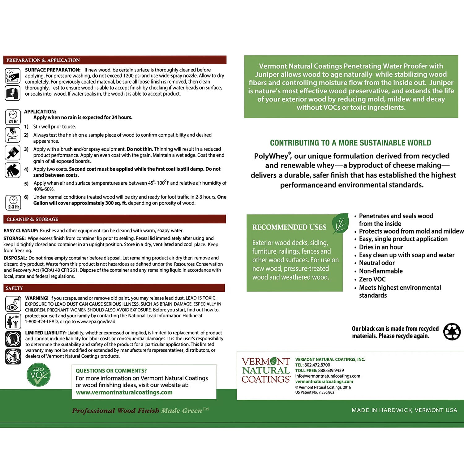 Exterior Wood Waterproofer – Juniper Infused – Vermont Natural Coating
