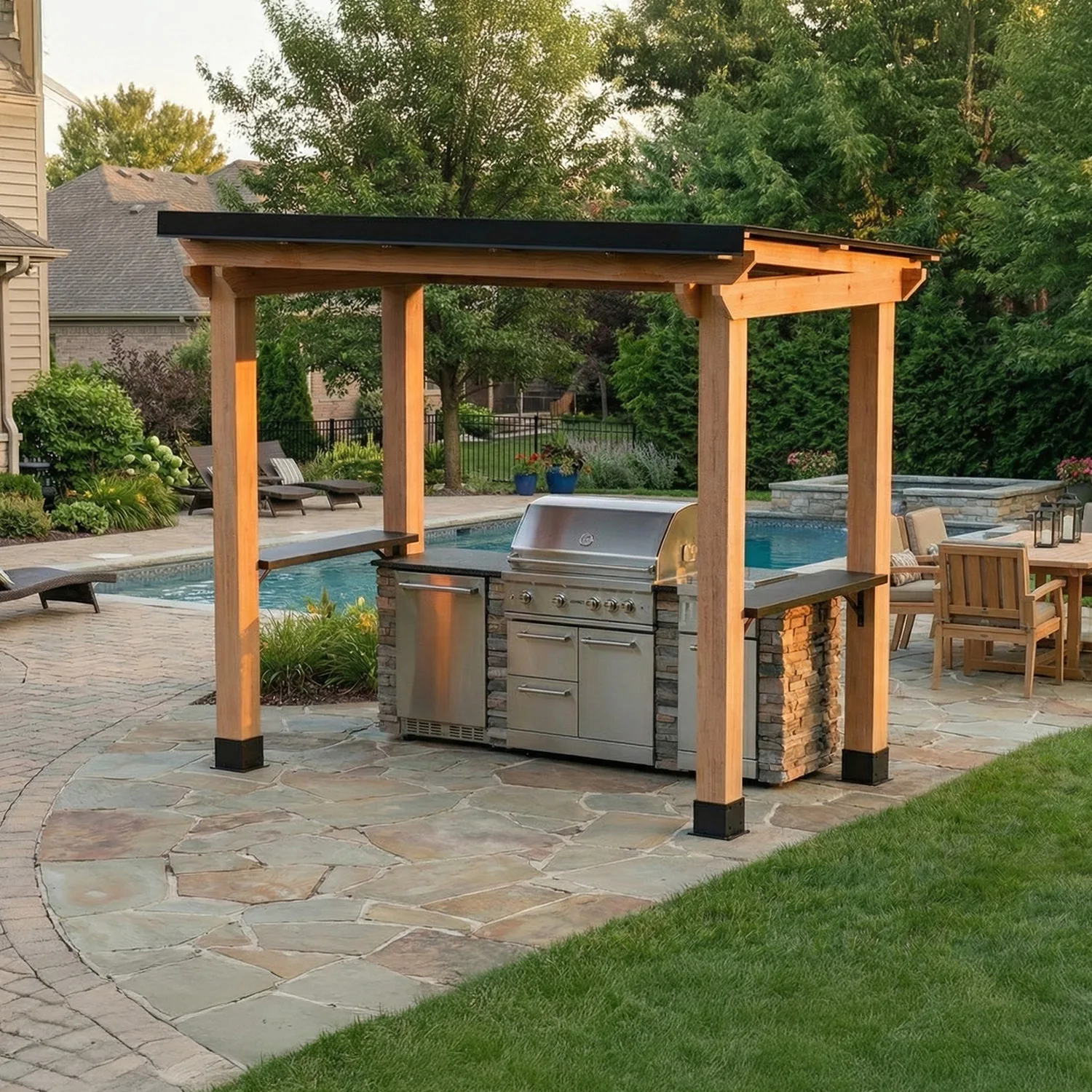 8×5 – Western Red Cedar – Grill Gazebo – Outdoor BBQ Shelter with Shelves