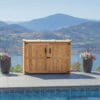 Durable Western Red Cedar Construction: Built with premium Western Red Cedar, the Oscar is naturally resistant to decay and insects, ensuring durability and low maintenance. Its sturdy construction, including a cedar floor, arched lid, double doors, and trim, provides an attractive and robust storage solution for any outdoor setting.