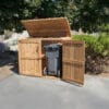 Storage Capacity: Holds up to three large 220 L garbage containers plus additional storage for bikes, tools, and outdoor gear (3-bin capacity)