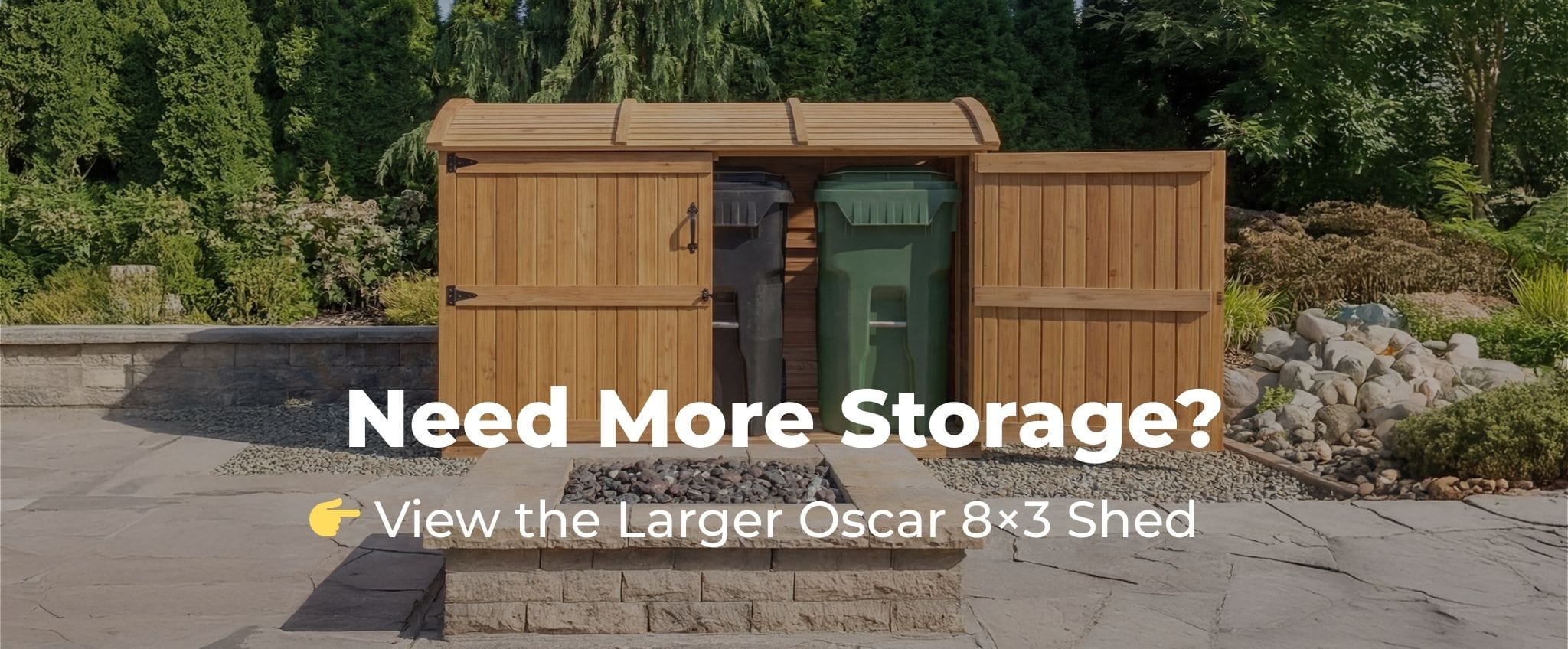 Our Oscar Cedar Shed is also available in a larger 8×3 size, offering increased capacity with the same premium Western Red Cedar construction and hydraulic lift-up roof. Click the Image below to learn more.