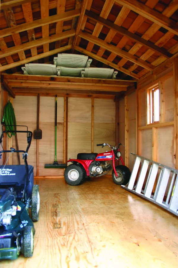 • Leave space between beams to promote drainage and prevent moisture buildup under the shed.