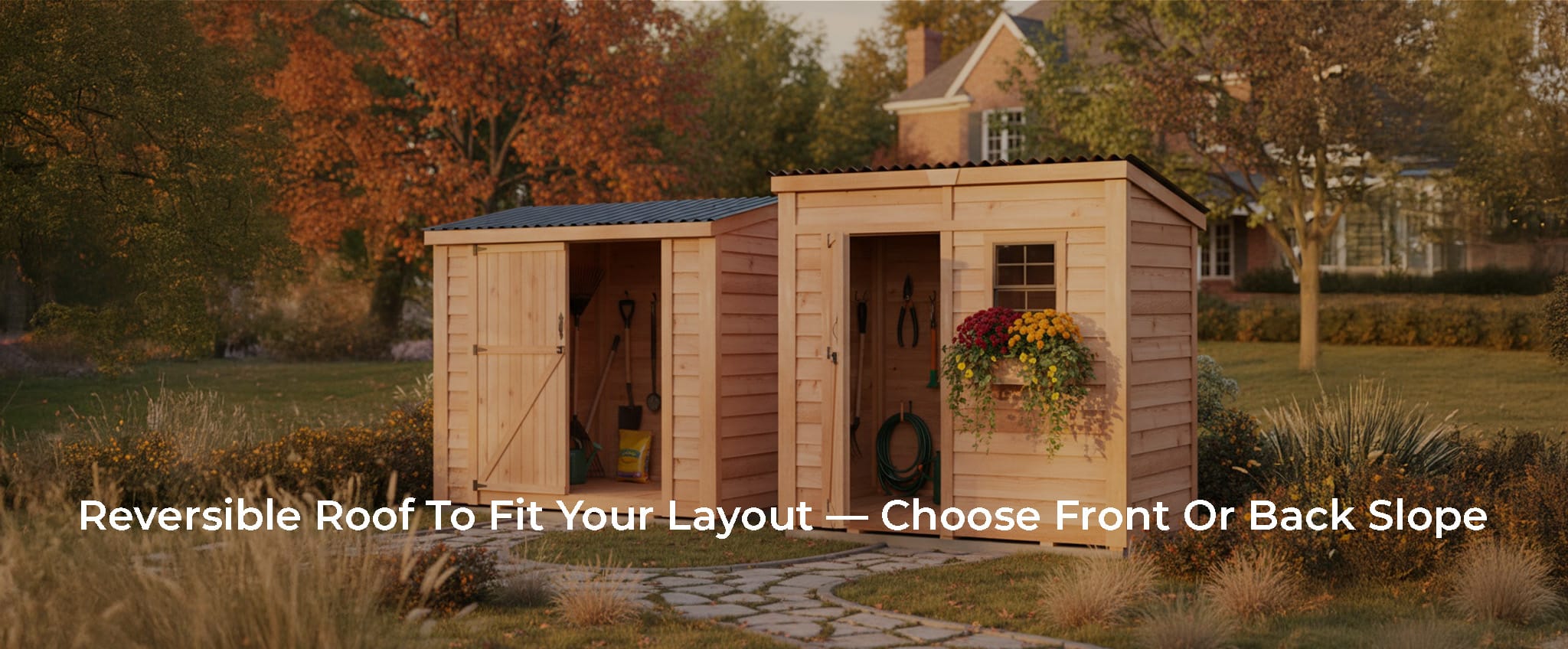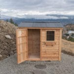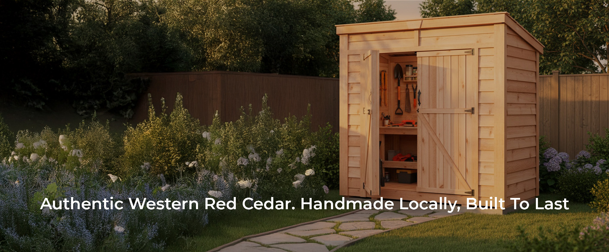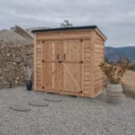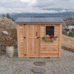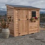 Refined storage for real life. At 96″ W × 45.5″ D × 96″ H, this slim, tall cedar shed tucks neatly along a fence line yet delivers 190 cu. ft. of organized space. Handcrafted in Canada from sustainably sourced Western Red Cedar, it weathers beautifully, stands up to the elements, and feels like part of the home—not the yard.