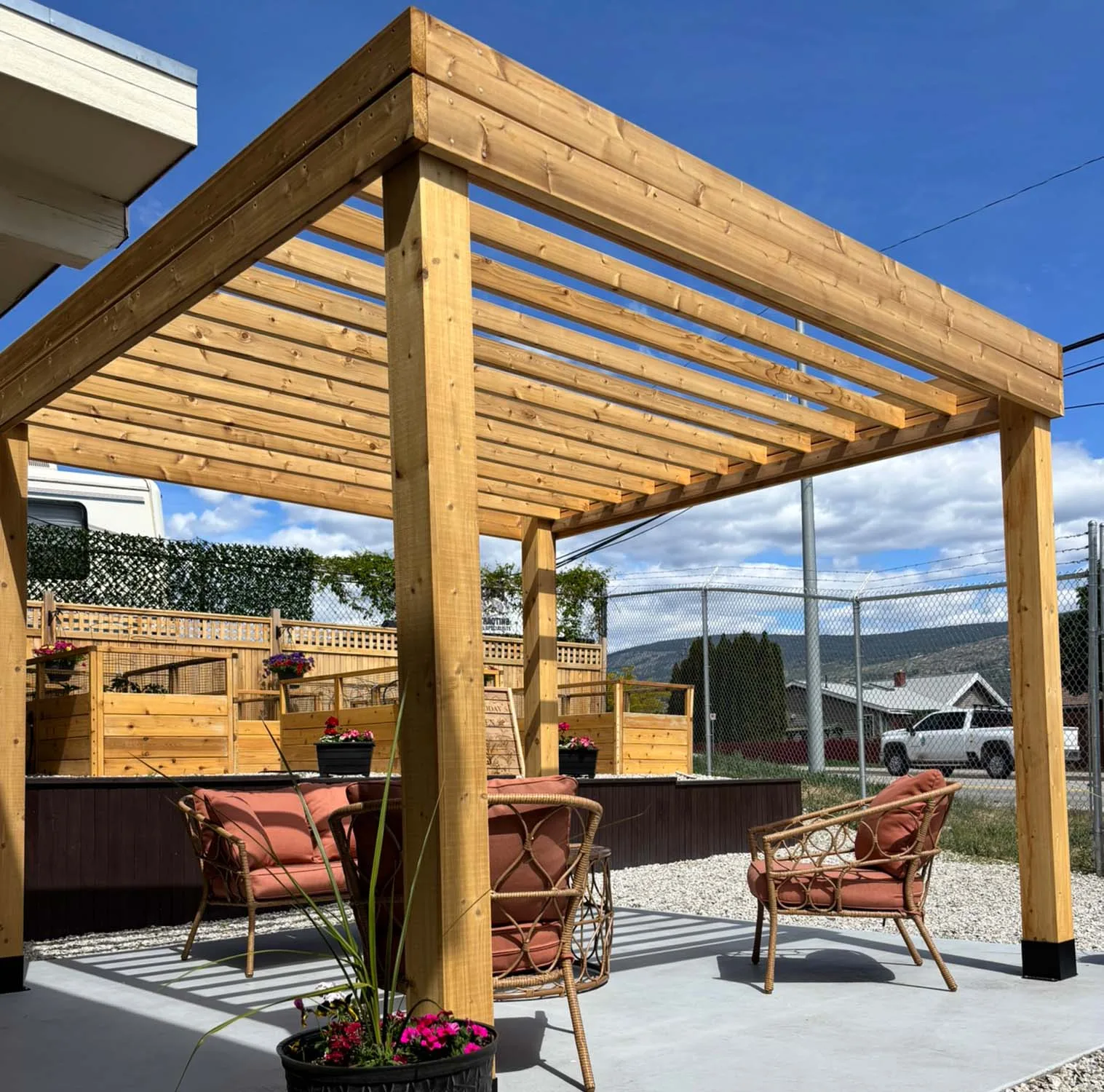We’re a Canadian company rooted in the scenic landscapes of Penticton, British Columbia — where craftsmanship meets nature. Every structure we build is thoughtfully designed and precision-crafted from sustainably sourced Western Red Cedar, a wood celebrated for its natural beauty, durability, and character.