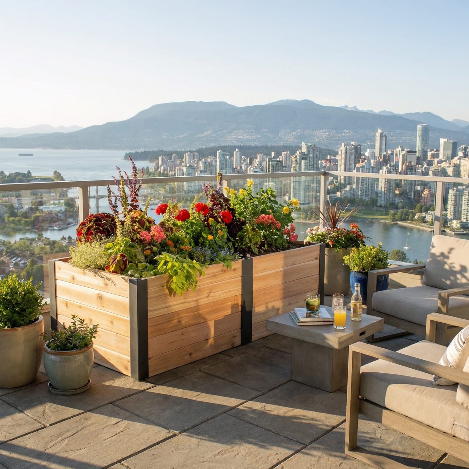 Integrated Floor: Built-in cedar base keeps soil contained — perfect for patios, balconies, rooftops, and renters