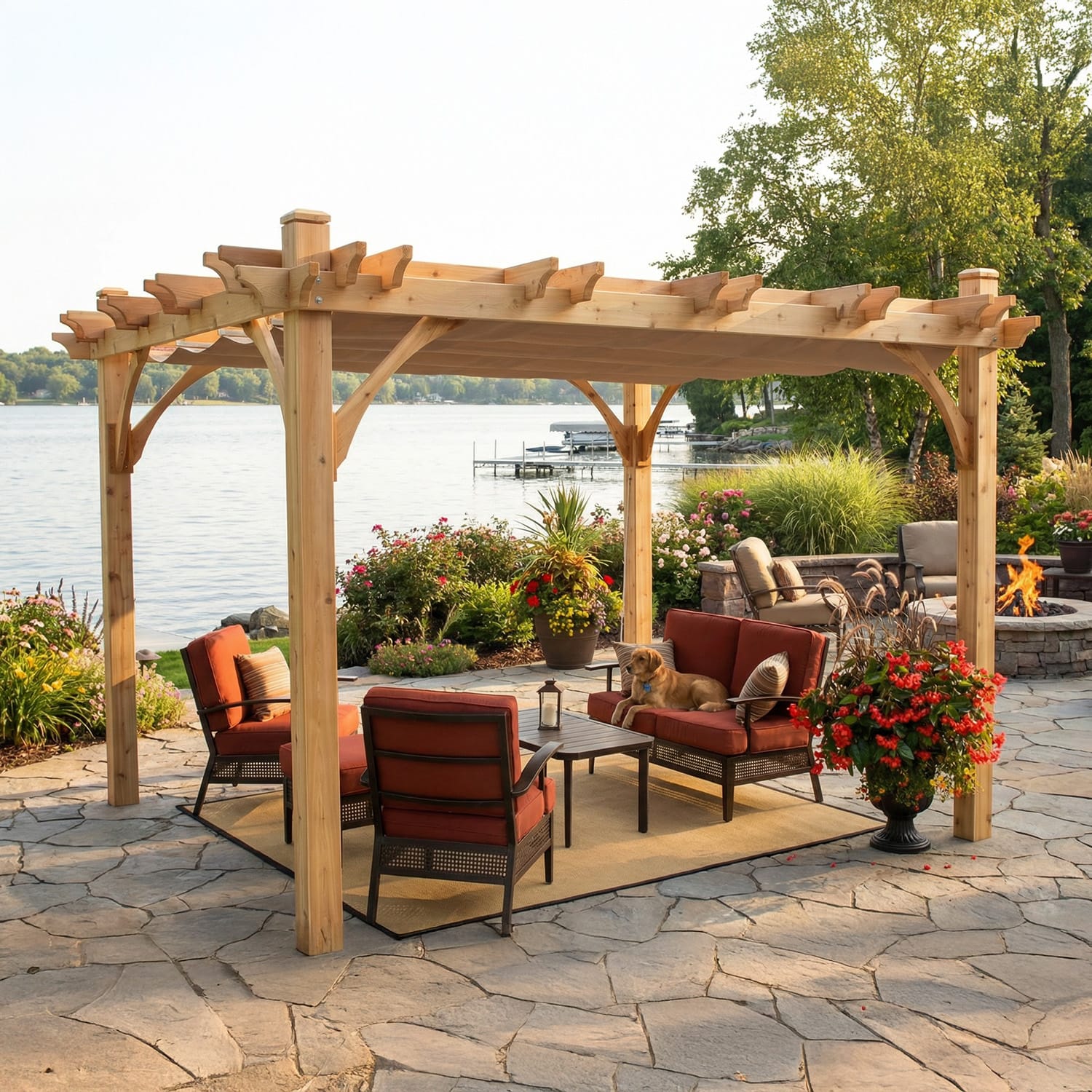 Elevate your outdoor space and enjoy your backyard in any weather—bring home the Western Red Cedar Pergola with Retractable Canopy today.