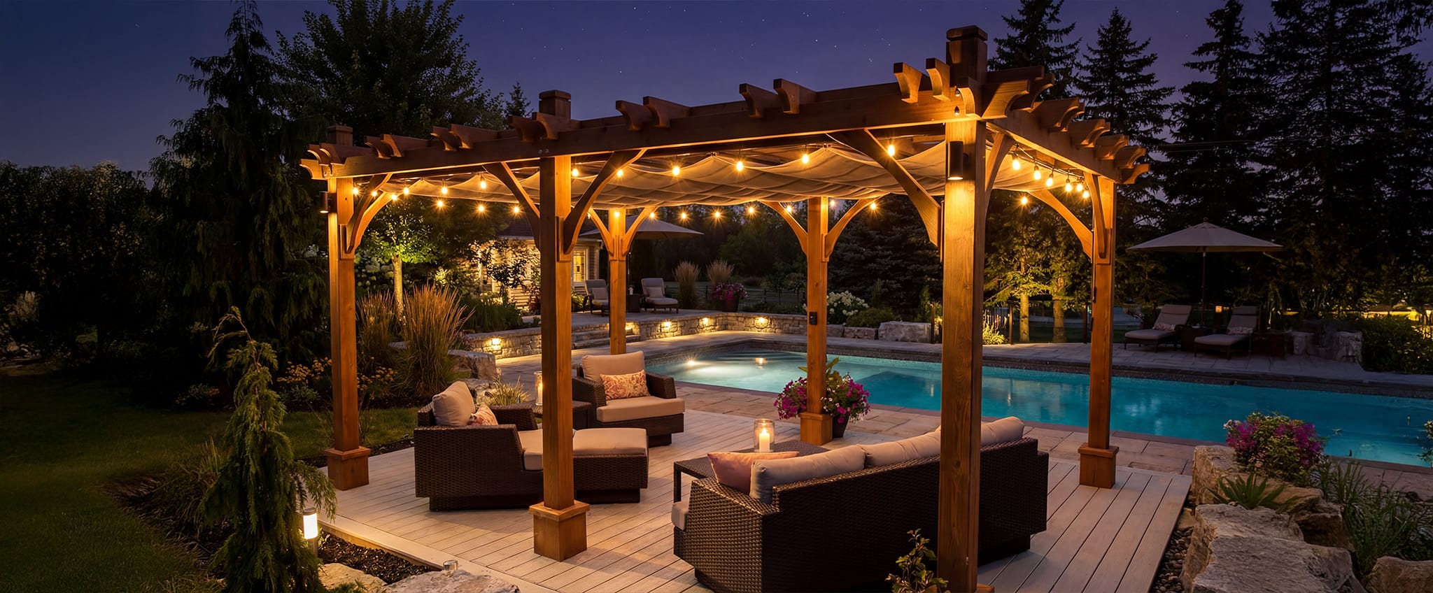 With its premium cedar construction, canopy system, and flexible sizing options, our pergolas deliver a refined outdoor living experience. Built to enhance your landscape, it’s an investment in comfort, beauty, and sustainability.